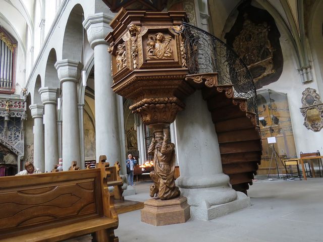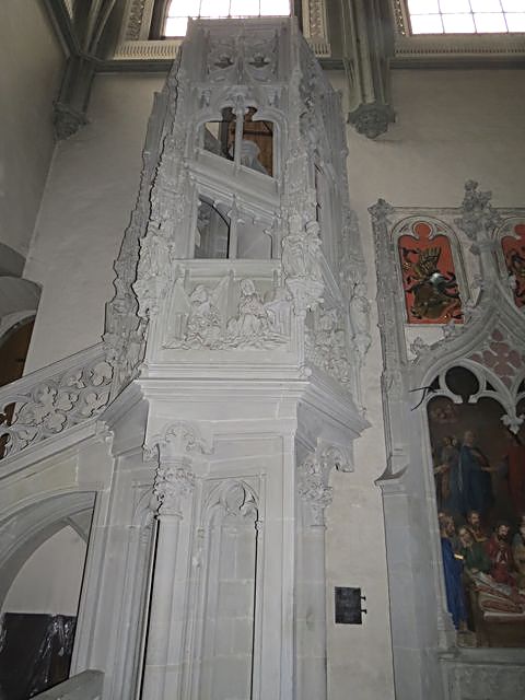 kazatelna v katedrále Matky Boží je výjimečným uměleckým dílem