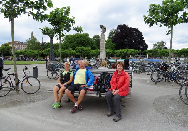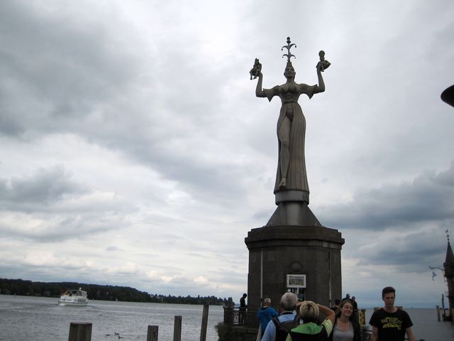 Asi dvě a půl hodiny trvala cesta autobusem do Friedrichshafenu, kde jsme nastoupili do katamaranu Ferdinand a za 45 minut dopluli do Kostnice. Počasí bylo tzv. „cestovní“ – žádné velké vedro, podmračená obloha (takže jsme nelitovali absence v horách) a svěží vítr.