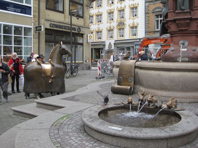 Císařská kašna - Barbarossův kůň; stylizovaná podoba Jindřicha III. Černého, římského císaře, je na třetím reliéfu, který jsme zapomněli vyfotit :-)