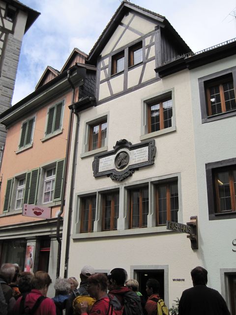 Na konci ulice, kde jsme v obdivu stáli před radnicí s historickou galerií pod širým nebem, jsme zvolili směr k městské bráně Schnetztor ze 14. století a šli Husovou ulicí (Hussenstraße), která se v době, kdy zde Hus bydlel, nazývala ulice sv. Pavla, k domu, v němž je Husovo muzeum spravované českou společností.