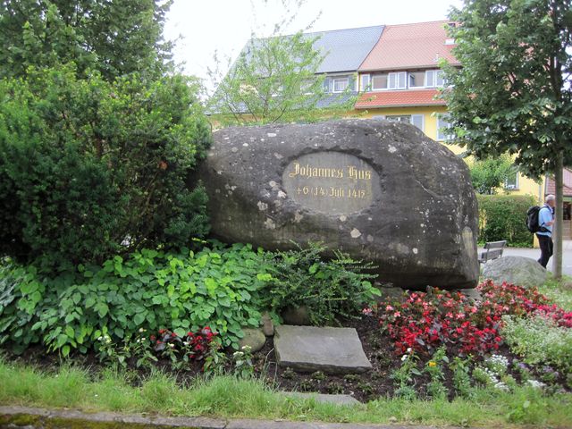 Naše cesta po stopách Jana Husa a Jeronýma Pražského pokračovala průchodem městskou branou, asi po deseti minutách jsme přišli do tichého parčíku, na místo, kde byli oba církevní reformátoři upáleni. Tehdy to bylo za branami, na městském mrchovišti.