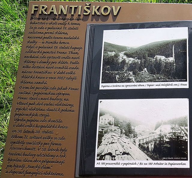 Počasí bylo už od rána přívětivé – obloha vyčištěná, vzduch vlahý, radost venku pobejt. Jeli jsme na Kvildu – při osmi kilometrech s neustálým stoupáním jsem se těšila na večerní sjezd při návratu na Borová Lada. Zastavili jsme pouze u Františkova, aby Mirek vyfotil novou informační ceduli o významné historii této zaniklé obce: