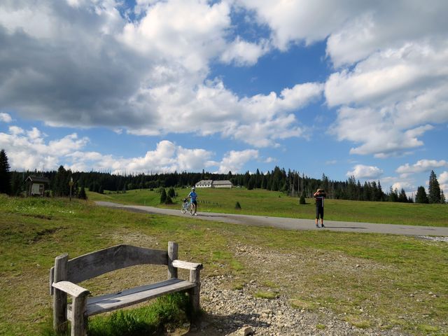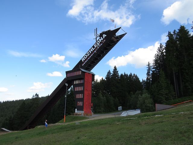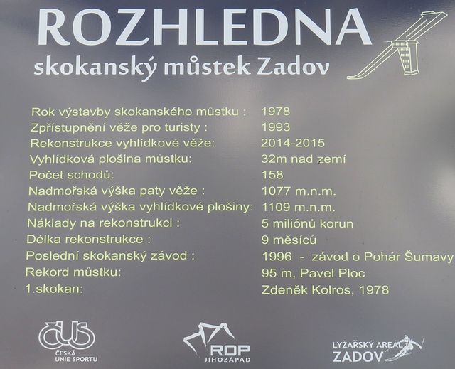 Sjeli jsme k rozcestníku na Zhůří a po cyklostezce č. 2123, která stejně jako žlutá pěší značka vede kolem Zhůřských slatí ke Třem jedlím a na Zlatou studnu, odkud jsme pokračovali po krásné nové asfaltové stezce až na Churáňov. Cestou na Pláně jsme nemohli minout rozhlednu uvedenou do provozu v roce 2015 a vybudovanou z nájezdové věže skokanského můstku na Kobyle, která je součástí Sport Parku Zadov – Kobyla.