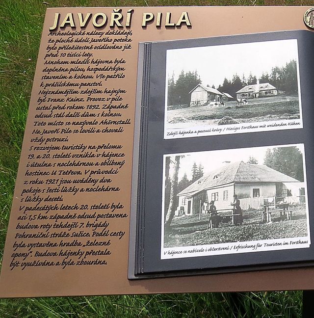 Že je to území, které lidi přitahuje svou atmosférou, dokázali i archeologové a historici při svých bádáních – objevili zde nejstarší pravěké osídlení v Česku – je mnoho dokladů o životě v dobách, kterých ve svých představách jen těžko dohlédneme, ale i z časů, jejichž pamětníci stále žijí mezi námi. Mluvím o poměrně hustém osídlení v okolí nedaleké Javoří Pily (Ahornsäge), které už je také minulostí – jen cedule zůstala jako připomínka oněch časů, kdy tu poutníci mohli dostat i občerstvení.