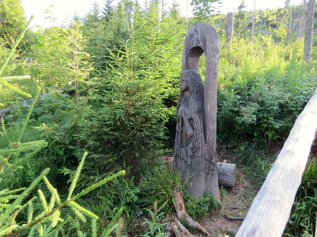 Kopec k hotelu Rankl mi připadal zlověstně naducaný, ale nahoře jsem mu pro výhled na „ráj šumavský“ odpustila, doplňkovou prémií se stala nová socha pana Pavla: