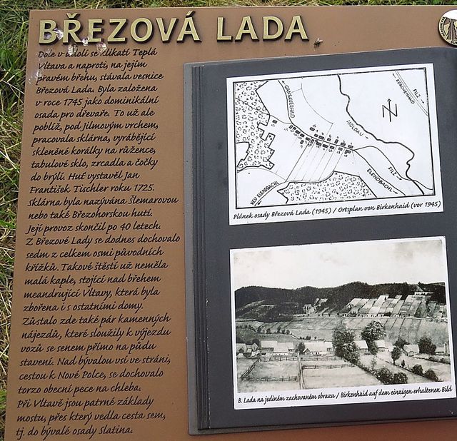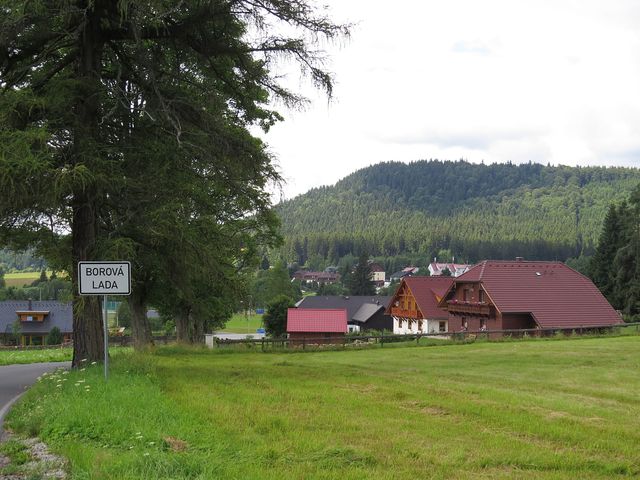 Cyklostezka č. 33 už vlastně uzavírá okruh – když jsme v Horní Vltavici odbočili vlevo na silnici k Borovým Ladům, zbývalo už jen 12 kilometrů mírného stoupání. A ještě jsme si v polovině dopřáli odpočinek u bývalé obce Březová Lada (Birkenhaid) – vlevo rozložitý hřeben Poleckého vrchu (1 121 m), vpravo Jilm (931 m) – mezi nimi v malebném údolí Teplé Vltavy a na svazích nedaleko vesnice Polka stála stavení dřevorubců, kteří se tu v polovině 18. století usadili.