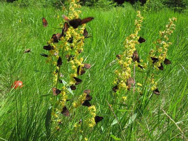 Když jsme od Ztraceného stoupali na Ptačí nádrž, bedlivě jsem pozorovala, zdali v místě, kde se vyskytuje orchidej vemeník bílý, bylina z čeledi vstavačovitých, bude úroda rostlinek – byla, a dokonce se mi zdá, že stvolů jsem napočítala o několik více nežli předchozí roky. 🙂 Zato vstavačů rostoucích podél cesty na Černou horu (1 315 m) podstatně ubylo – doufám, že to není důsledek chování lidí, ale pouze záležitost přírody regulující stavy svých rostlin. Nový les pod vrcholkem Černé hory roste tak, že za pár let nebude z ní rozhled – zatím ještě jsme na vzdáleném obzoru nejasně viděli oba Javory, a zřetelně obě blízké žalující Mokrůvky, ze kterých trčí pahýly stromů napadených kůrovcem.