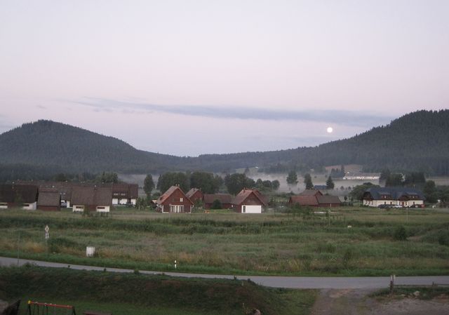V pondělí 18. července 2016 jsem vstala dřív než sluníčko a po čtvrté hodině vyfotila „ščudlou“ blednoucí měsíc nad vesnicí Borová Lada,