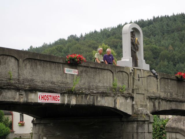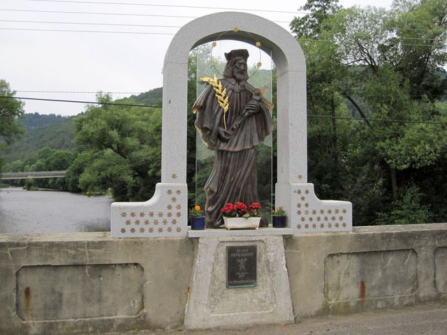 Naší touhou bylo vlastníma očima popatřiti na skleněnou sochu vodáckého patrona sv. Jana Nepomuckého na starém mostě v Čepicích nedaleko Rabí.