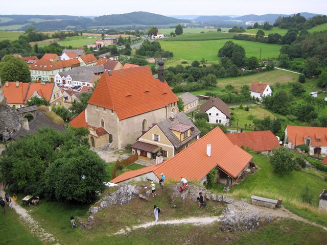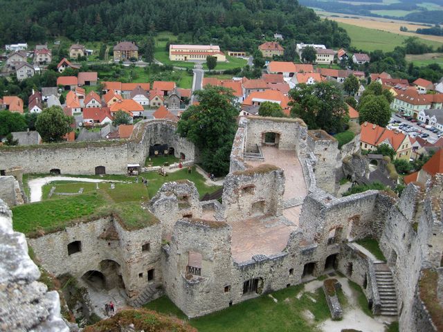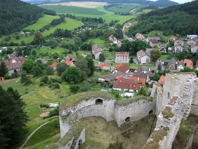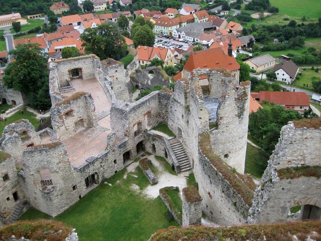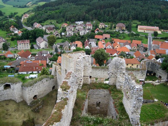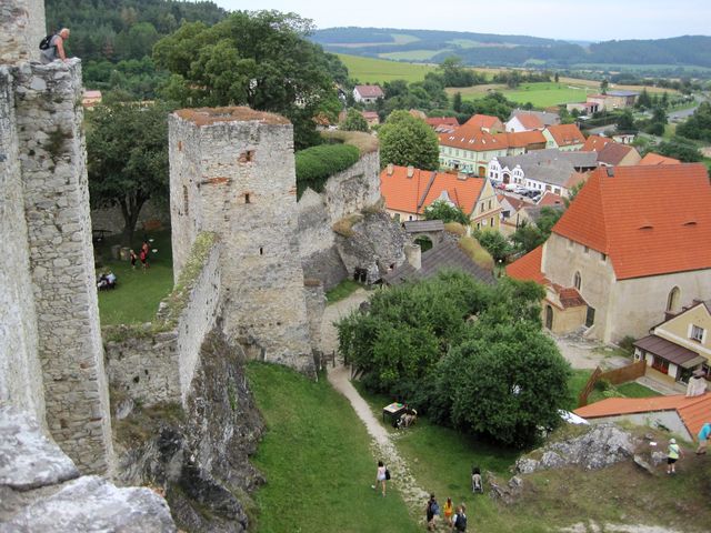Mohutná, 26 metrů vysoká obytná a obranná věž, tzv. donjon, se zdála být kvůli zabezpečení složitým systémem padacích lávek a průchodů věžemi nedobytná, přesto však byla v letech 1420 a 1421 husitským vojskem vedeným Janem Žižkou z Trocnova pomocí děla zvaného bombarda dobyta.