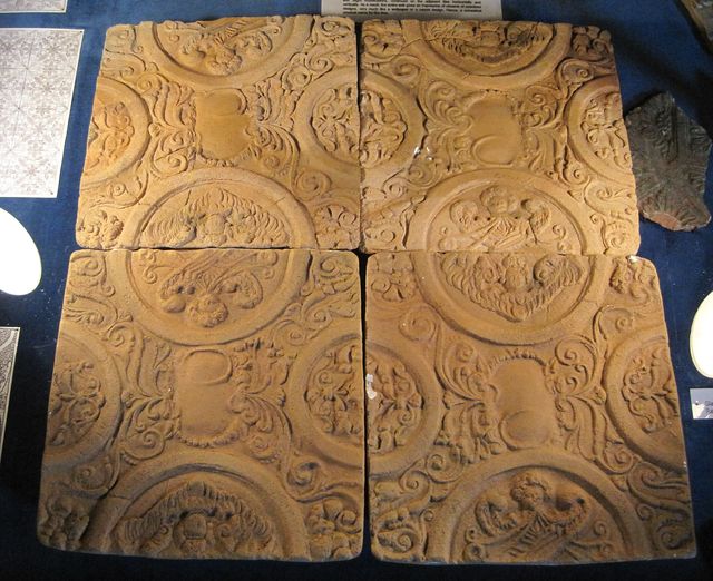 Pozornost jsme věnovali i tzv. tapetovým (kobercovým) kachlům z přelomu 16. a 17. století s ornamentální plastickou výzdobou. Celá stěna kamen je ozdobena souvislými vzory, které připomínají tapetu nebo koberec – na jednotlivých kachlích totiž chybí obvyklé krajové lišty.