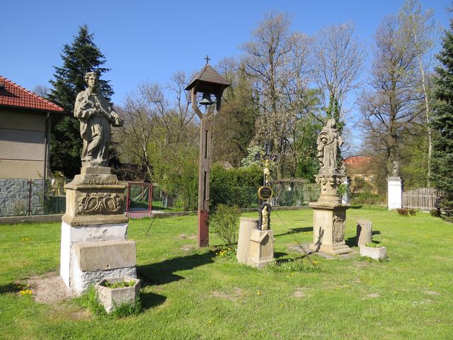 Na návsi nelze bez povšimnutí přejít kolem soch sv. Jana Nepomuckého a Marie Panny: