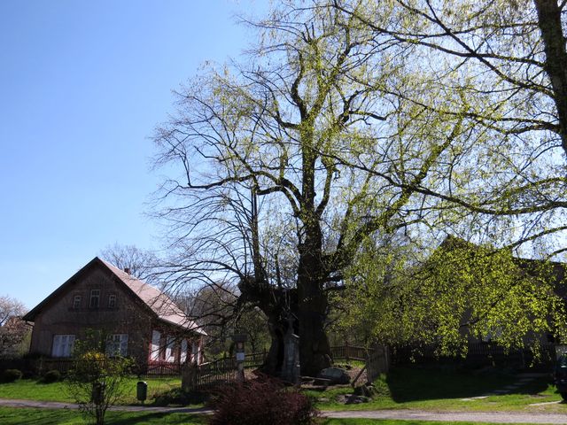 Stát se dnešního dne, ve zcela vzkříšeném jaru, průzkumníky ve východní části Železných hor, nebylo nám ani Jitce a Honzovi vůbec proti mysli. Využili jsme krásného dne s neuvěřitelně modrou oblohou k seznámení s trasou Naučné Keltské stezky, neboť bychom ji chtěli na podzim nabídnout svým kolegům jako tip na vycházku. Dojet do Nasavrk s klapkami na očích a nevšímat si blízkých, turisticky přitažlivých cílů, bylo však nad naše síly. A tak jsme si dopřáli, když už to přívětivé jaro přineslo situaci, kdy Dřěvo sě listem odievá a slavíček v keřku spievá, 🙂 krátkou zajížďku do kraje několika slavných stromů-velikánů i bezpočtu těch bezejmenných, v tomto radostném tepajícím období ale bez rozdílu ozdobených drobným, něžně zeleným mladým listovím, které nechá poutníkovi dost prostoru obdivovat velebnost věkovitých mohutných kmenů a haluzí.
