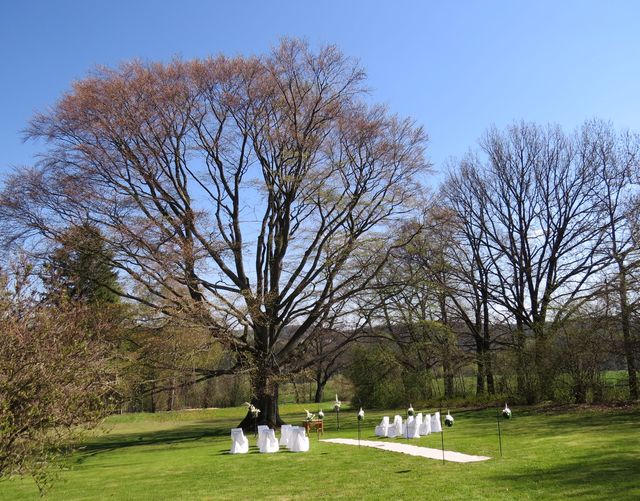 Klokočovský zámeček teď slouží pro pořádání společenských akcí, právě dnes se měla v jarně oděném parku konat na mladém pažitu pod velebnými stromy svatba.