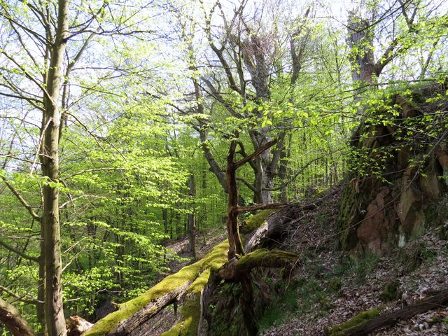 Využili jsme možnosti trochu se projít po protáhlé ostrožně v blízkosti hradu – místo je pro lesní hospodaření nedostupné, a tak se příroda chová po svém a člověk musí obdivovat její výtvory.