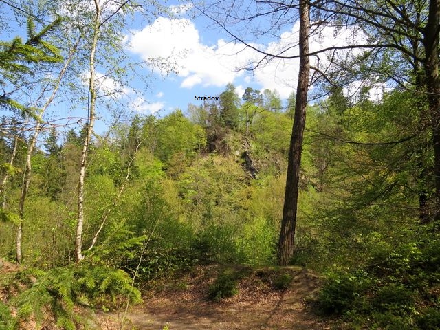 Výstup na ostroh nad řekou, kde stával hrad Strádov, správní středisko celého panství až do začátku 15. století, nebyl nic nesnadného a rozhodně stál za to – výhled do hlubiny na hladinu Chrudimky lesknoucí se ve slunci byl překrásný – zvolený termín návštěvy, kdy se stromy teprve šatí, jsme si pochvalovali, za plného léta už dolů nelze dohlédnout. Pověst praví, že zámecké sklepy v Nasavrkách jsou chodbou propojeny s hradem Strádov, jisté ale je, že po přeložení správy panství do Nasavrk skončila hvězdná éra Strádova a od té doby už slouží jen jako romantický cíl vycházek.