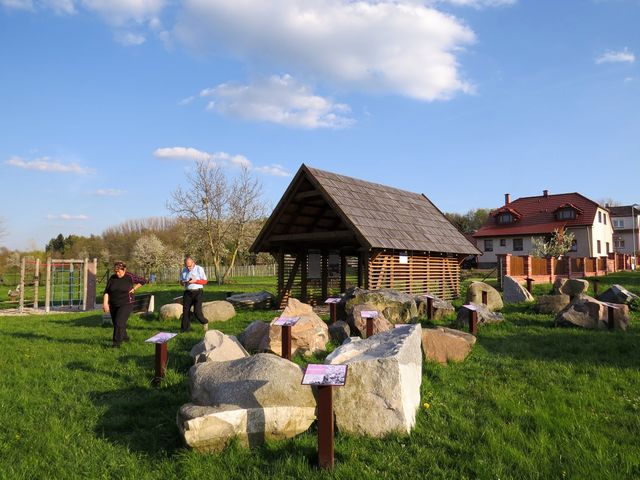 Kolem dřevěné stavby, v níž je umístěno pět tabulí s informacemi o hlubinných vyvřelinách, je rozmístěno asi dvacet ukázek – kameny jsou označené tabulkou a „rodným listem“ s komentářem o původu a složení horniny.