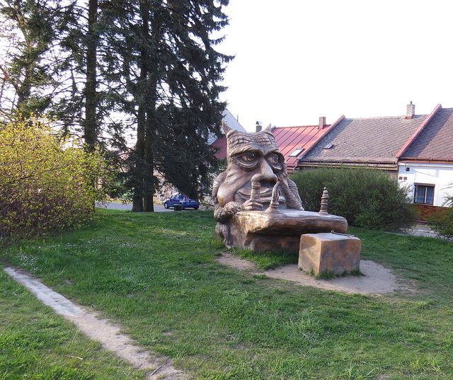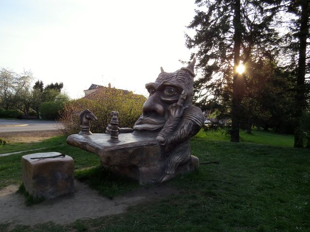 Už jen jako exotický bonbónek bylo okouknutí Čertova stolku v Chotěboři – betonové, tři metry vysoké sochy Michala Olšiaka, instalované v prosinci 2013 v parčíku u hlavní silnice na Ždírec nad Doubravou.