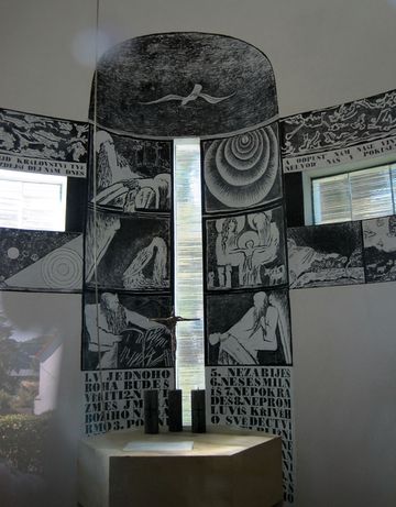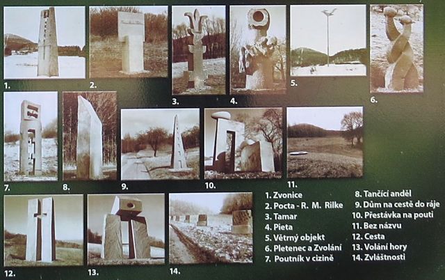 Kvůli nabitému programu jsme se nemohli vydat do Černčic, abychom na vlastní oči spatřili ostatní sochy, museli jsme se spokojit s jejich obrázky na infotabuli; tady jsou: