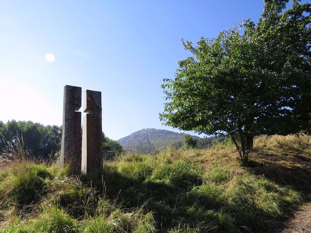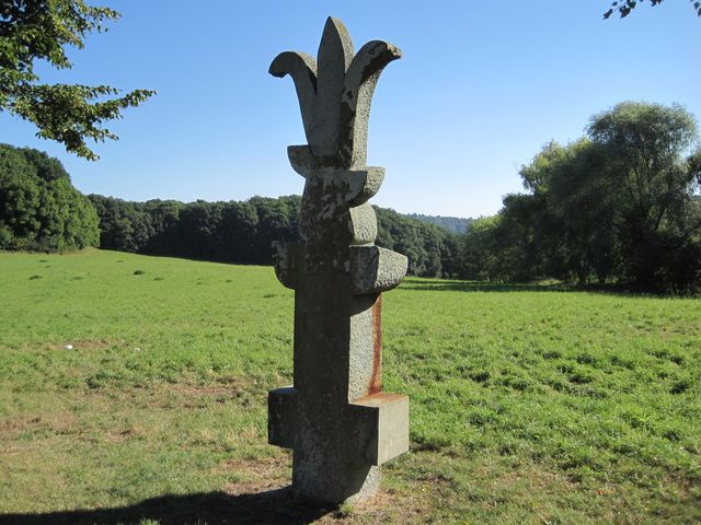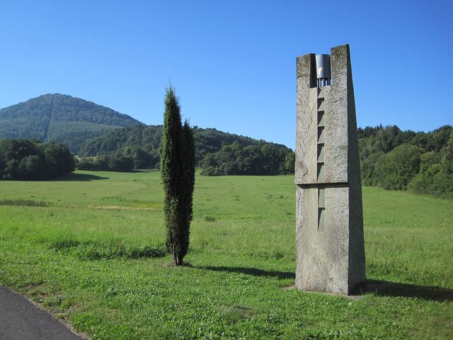 Nyní zařadím obrázky soch tak, jak jsme je v krajině, která stále stoupala ke svahům větrné, či hromové hory (německy Donnersberg), potkávali.