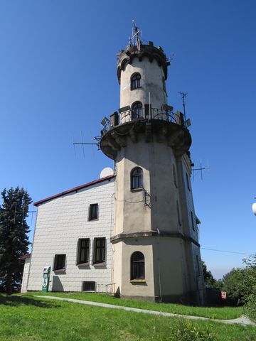 Meteorologická stanice s 18 metrů vysokou vyhlídkovou věží se začala stavět v roce 1903, dokončení trvalo rok, pozorování započala 1905 – je tedy nejstarší observatoří u nás. První písemná zpráva o Milešovce je z roku 1521, v roce 1820 zde postavil podnikavý hostinský malou hospodu, za pár desítek let i 4 metry vysokou kamennou rozhlednu. Mezi léty 1819–1839 podnikal častokrát výstup na Milešovku pruský král Fridrich Vilém III., někdy v doprovodu německého přírodovědce Alexandra von Humboldta, který výhled z vrcholu považoval za jeden z nejkrásnějších, jaký kdy viděl… Že tu byl poutník Mácha, literáti Neruda, Vrchlický, Sabina, je snadno uvěřitelné – dominanta Českého středohoří nabízí výhledy, které dají umělcům s bohatou fantazií křídla…