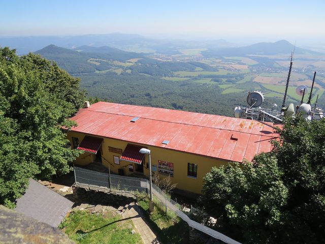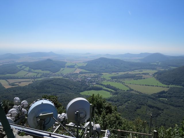 Cesta na vrchol byla pohodová – královna Českého středohoří, největrnější hora s největším počtem bouřek za rok a nejvyšším počtem dnů s mlhou, se dnes chovala velkoryse, vpravdě s královskou noblesou – prostě nás nechala žít. 🙂 Znělcový kužel Milešovka (837 m n.m.) převyšuje své okolí až o 400 metrů, je tedy ideálním rozhledovým místem – dneska sice zcela ideální podmínky nebyly, ale živly svou sílu nepředváděly, takže jsme se na vyhlídkovém ochozu věže, která je součástí meteorologické stanice, tetelili blahem při pohledu na Říp, Hazmburk, Lovoš, Košťál a další vrcholky Českého středohoří i masiv Krušných hor.