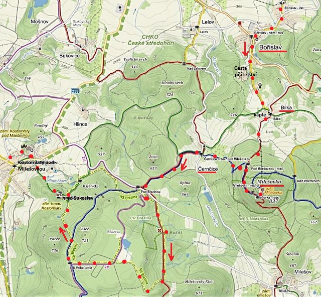 Cesta přátelství v Bílce, Milešovka, Kostomlaty a Kyselka v Bílině