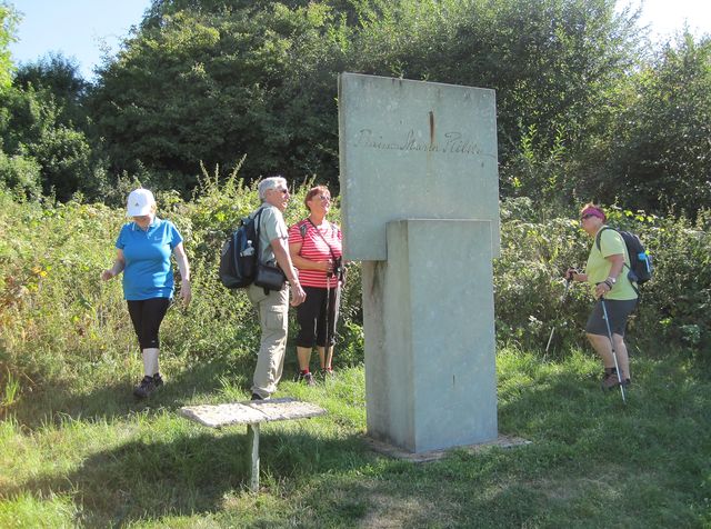 Turisté čtou Rilkeho báseň Tichý přítel z cyklu Sonety pro Orfea: