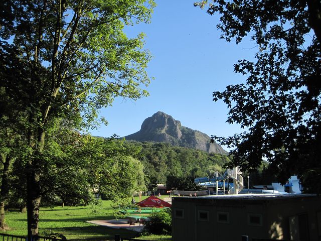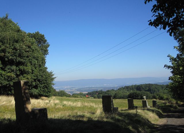 Po modře značené cestě jsme sestoupili dolů a vydali se k Černčicím, oči jsme však mohli nechat na překrásném kopci – jeho siločáry nás nechtěly propustit ze svého pole, stále jsme se ohlíželi a královna Milešovka se nechala obdivovat: