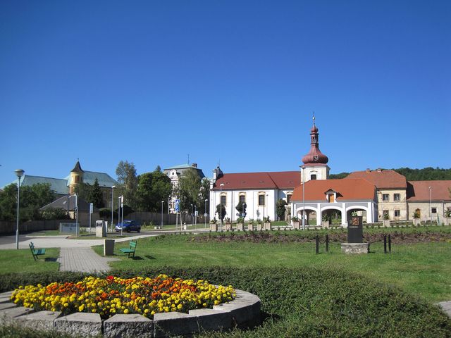 Zámek, který je kromě rozlehlého a výstavného kostela nejvýraznější budovou obce, nechal postavit Humprecht Jan Černín, ale už od konce 19. století byl areál přestavěn na ženský nápravný ústav, jímž zůstal doposud. Nezašli jsme ani ke studánce se zázračnou vodou, kvůli níž vznikla kaple Panny Marie Pomocné a Kostomlaty bývaly slavným poutním místem.