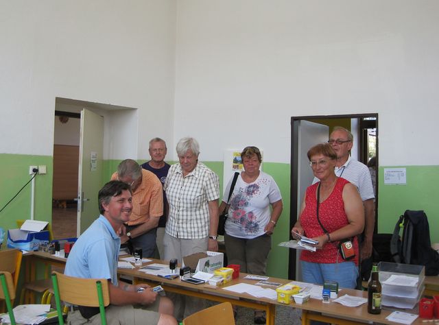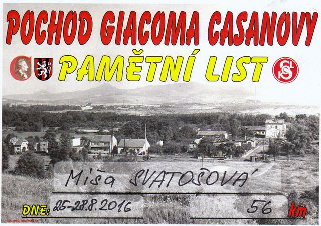 Další, rovněž příjemné zastavení, bylo s pořadateli ve štábu sídlícím v ZŠ Jaroslava Pešaty – dozvěděli jsme se, že 13. ročník Pochodu Giacoma Casanovy, asi nejznámější zdejší akce, kterou pořádá turistický oddíl TJ Sokol Duchcov, byl poznamenán počasím – pochodníci nemají v oblibě velká vedra, která teď ve vrcholícím létě panovala, a tak během čtyř dní, kdy akce trvá, využilo připravených tras celkem asi 180 lidí, pěšáků i cyklistů.