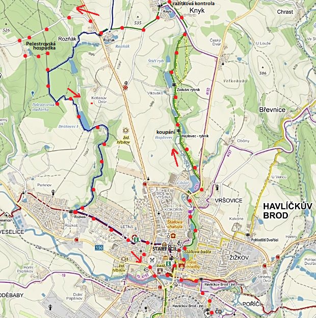 Zeleně značená trasa nás dovedla do Knyku, kde v místní hospodě byla razítková kontrola. Z Knyku jsme ťapkali na Rozňák a ignorovali modrou značku, po níž jsme podle propozic měli pokračovat – odbočka ze stanovené trasy vedla do Pelestrovské hospůdky. Kdo ví, jak je tam příjemně, nediví se. 🙂