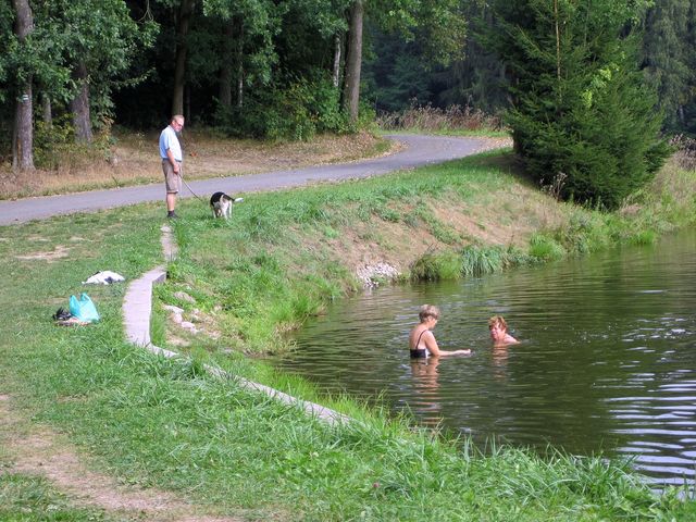 My jsme se vydali do Brodu s Jitkou a Honzou Korbelovými a Ivou – vše probíhalo stejně jako vždycky: na startu V Rámech vstřícné přijetí, ochutnávka dobrých moučníků, registrace na trasu 15 km, převzetí mapky i popisu a odchod do přírody. Nejdříve vyšperkovaným a elegantním brodským náměstím, pak po cestičkách vlídným parkem k rybníku Cihlář. Máte-li v partě dvě posedlé plavkyně, které když uvidí rybník, snadno si vsugerují pocit, že počasí je právě stvořené pro koupání (brrr!), tak se můžete nadít přestávky na trase – s tím se nedá nic dělat. 🙂 Aspoň jsem měla čas popovídat si s kolemjdoucími. 🙂