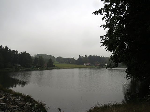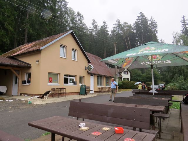 S pověstným štěstím poutníků jsme za počínajícího deště docházeli do cíle na Orlíku, během pár minut se spustil prudký liják.