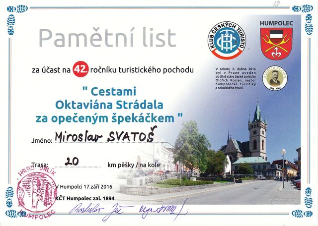 Pamětní list dnešního pochodu mě nadchl – byla na něm i zmínka o letošním uvedení Oldřicha Kociana (1888–1942) do Síně slávy české turistiky!