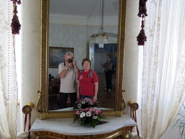 Na zámku nabízejí několik poznávacích okruhů – vybrali jsme si ten základní – asi hodinovou komentovanou prohlídku reprezentačních místností a expozici dýmek. Na rozdíl od jiných zámků zde zůstalo většinou původní vybavení z poloviny 19. století – výmalby i záclony, množství drahých obrazů, porcelánu – skvělá ukázka šlechtického stylu bydlení.
