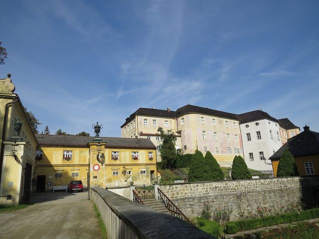 První prohlídka začínala až v 9:30, měli jsme tedy dost času na procházku po terasách, nádvoří i zámeckými zahradami.
