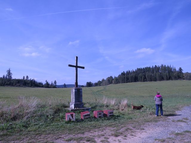 kde na rozcestí pěšin stojí kříž a před ním nápis NEBE 🙂 Souhlasili jsme.