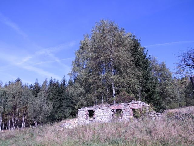 Na infotabuli jsem se dočetla: „…hrou náhod se podařilo lesnímu dělníku Franzi Schlögelovi zpětně nastěhovat do svého domu, který i přes různé útrapy doby zůstal stát až do dnešních dnů a osamocen na rozlehlých pláních kolemjdoucím tiše připomíná smutné dějiny této krásné horské osady“.