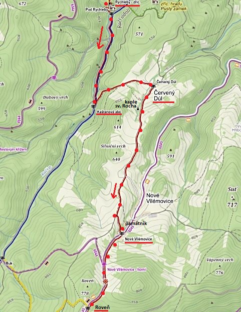 Podívejte se na mapky, ve kterých je vyznačená trasa: