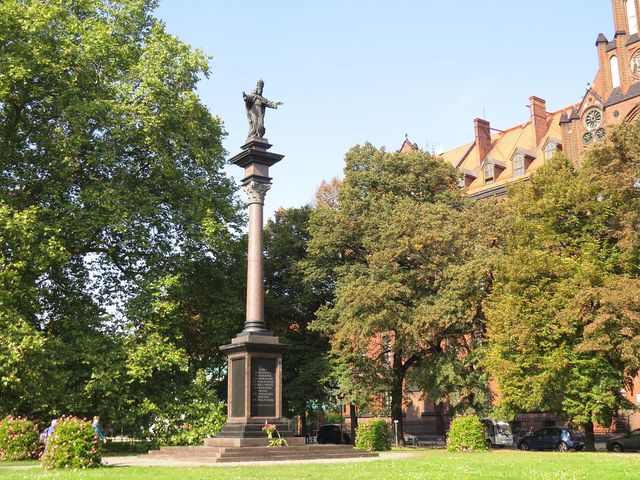 Na Dómském ostrově jsme stejně jako všichni příchozí vstoupili pod ochranu Krista Krále Všeho Světa – tak nazývají Poláci sochu umístěnou na počest milénia polského biskupství před Papežskou teologickou fakultu.