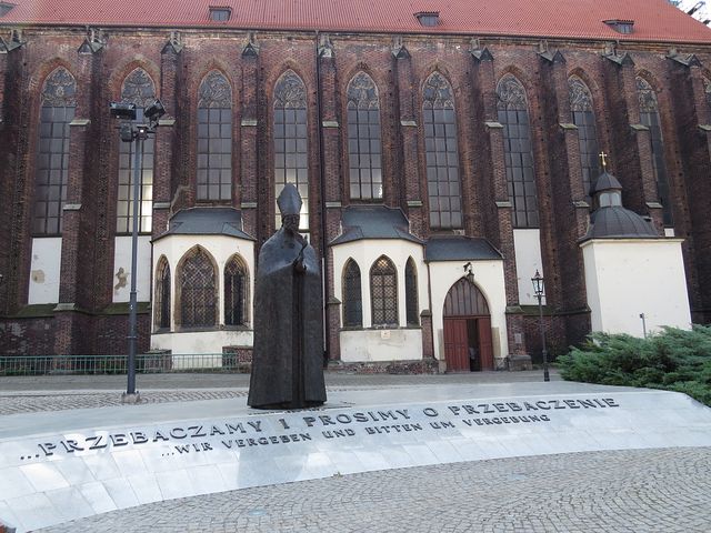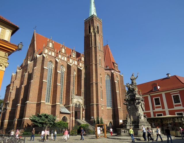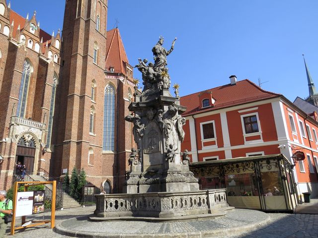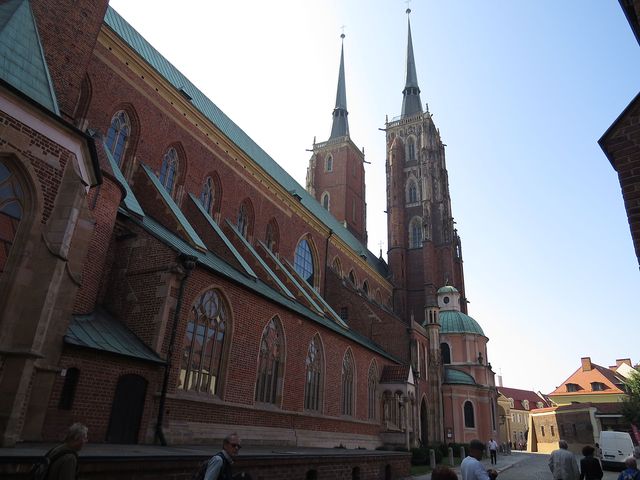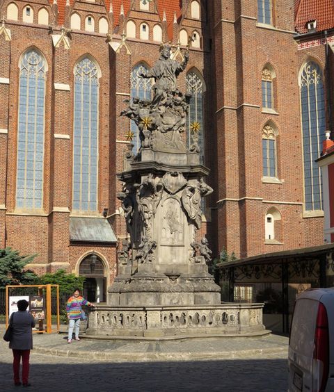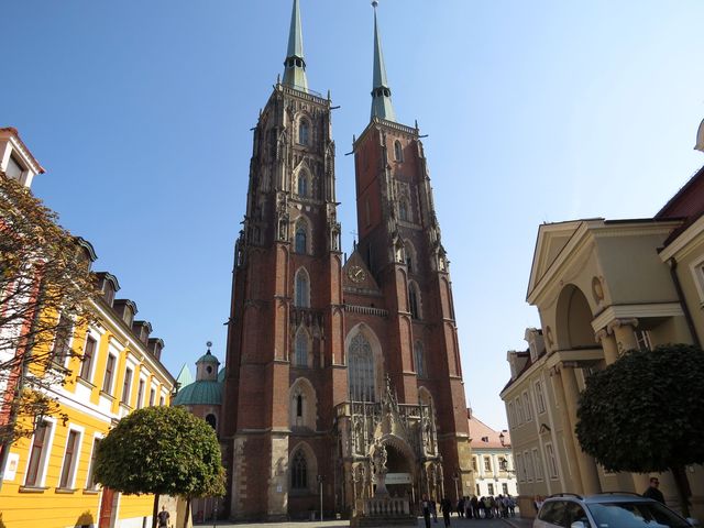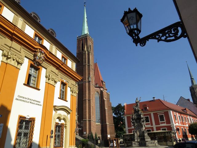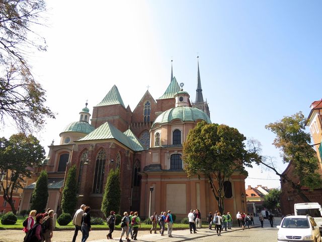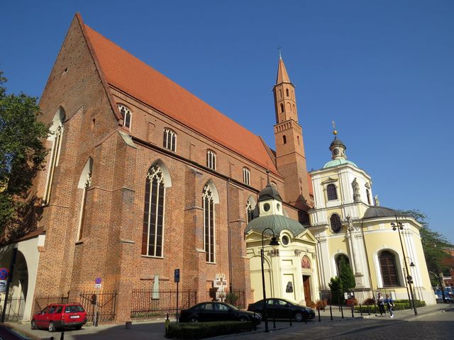 Podle tištěných průvodců jsme se blížili k nejkrásnější gotické stavbě ve Vratislavi, kterým prý jsou kostel sv. Bartoloměje a kostel sv. Kříže – oba pod jednou střechou, sv. Bartoloměj v dolním patře, kostel sv. Kříže v horním – novátorské pojetí stavby založené roku 1287 a dostavěné 1350, i její udivující rozměry (66 m délka, 44 m šířka, výška 19 m, věž vysoká 69 m), budí respekt dodnes – a ke všemu je na vnější zdi připevněna tabulka s informací, že v letech 1503–1538 byl kanovníkem kapituly u sv. Kříže sám Mikuláš Koperník! (Jeho pobyt ve Vratislavi prý však není doložen písemnými prameny.)