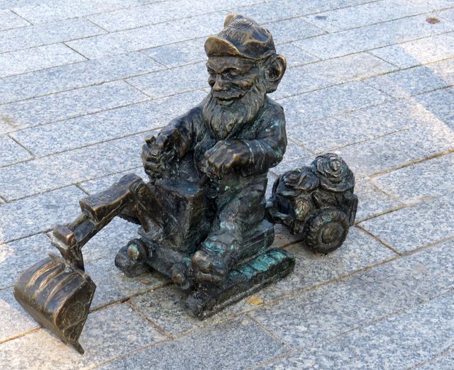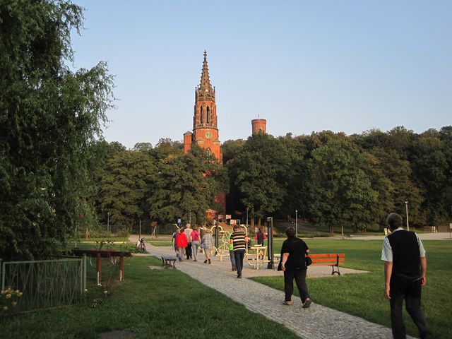 Po nábřeží upraveném jako odpočinková zóna a nazvaném Promenáda Marie a Lecha Kaczyńskich jsme mířili ke Grunwaldskému mostu – moc rychle to nešlo, protože jsme se často zastavovali – dechberoucí výhled na Dómský ostrov s nádhernými kostely a množství moderních soch, laviček, lodiček, moderních budov na protějším břehu a všelijakých lákadel, například trpaslíků, kteří opravdu vlezou všude, nebral konce.