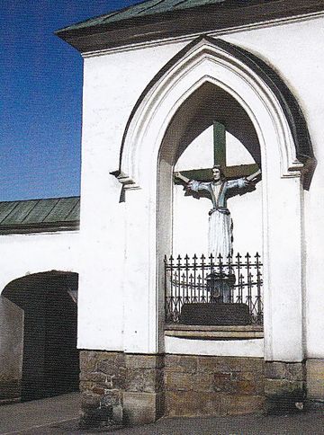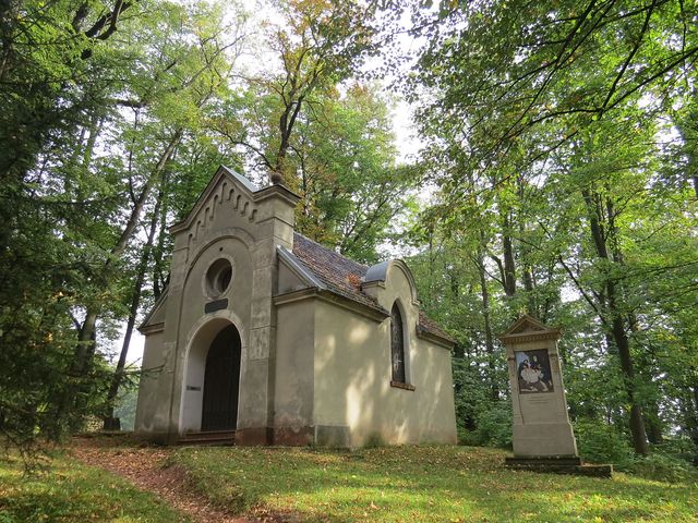 Mezi všemi stavbami na Kalvárii mě zaujala kaplička sv. Wilgefortis, čili česky sv. Starosty, pomocnice v beznadějných situacích, o níž Fráňa Šrámek napsal: