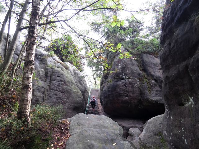 V Karlově jsme se po žlutě značené cestě vydali k výstupovým schodům na vrchol Velké Hejšoviny.