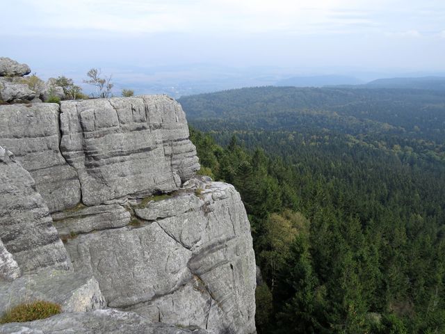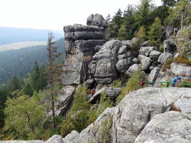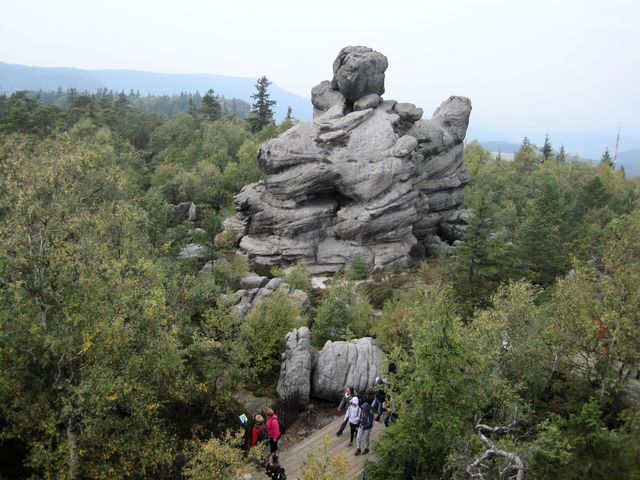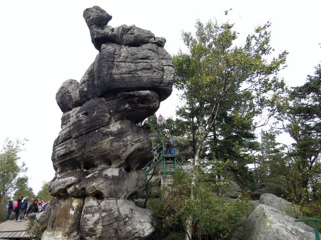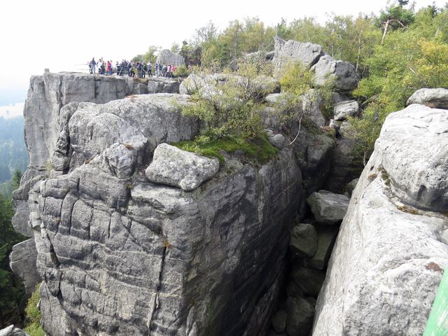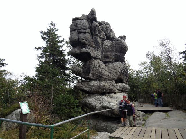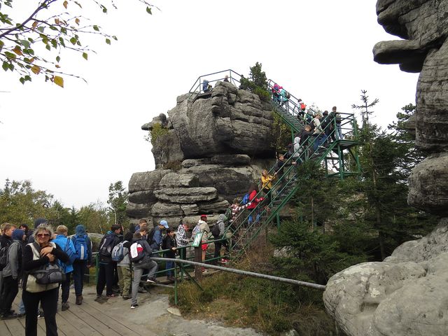Autobus nás vezl po trase Paczków – Zlotý Stok – Klodzko – Radków, kde jsme z hlavní silnice odbočili a prohlídli si Vambeřice – hlavní program dnešního dne však byl výstup na Wielki Szczeliniec, tedy česky Velkou Hejšovinu. Parkoviště v Karlówě je nejvhodnějším bodem pro začátek poznávacího okruhu po nejvyšším vrchu Stolových hor, 919 metrů vysokém, zajímavém kopci s neméně zajímavým názvem v polštině i v češtině. Jak ke svému názvu přišel? Do roku 1945 byla oblast součástí Německa a výrazný masiv dostal jméno Große Heuscheuer (v překladu velký seník), protože dominanta kraje, bývalého Kladska, opravdu z dálky může někomu připomínat kupku sena, z toho pojmenování vzniklo slovo Hejšovina; pro polský název platí podobná etymologie.