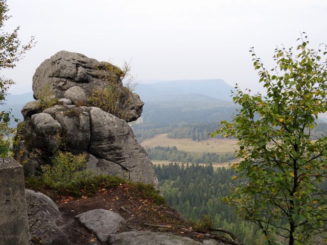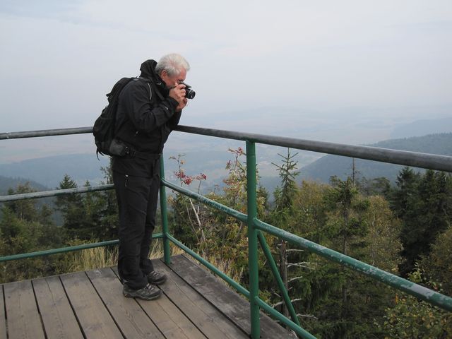 Naposledy jsme tu byli v roce 2008 s předsedou oblasti KČT Královéhradeckého kraje Dr. Václavem Hovorkou, naším průvodcem po trasách Letního turistického srazu v Lázních Bělohrad, tedy už byl čas znovu na vlastní oči obhlédnout neopakovatelnou krajinu. Tentokrát se proháněl na vyhlídkách značný vítr, viditelnost nebyla nejlepší, ale účel návštěvy to nijak nezkazilo.