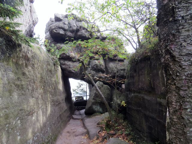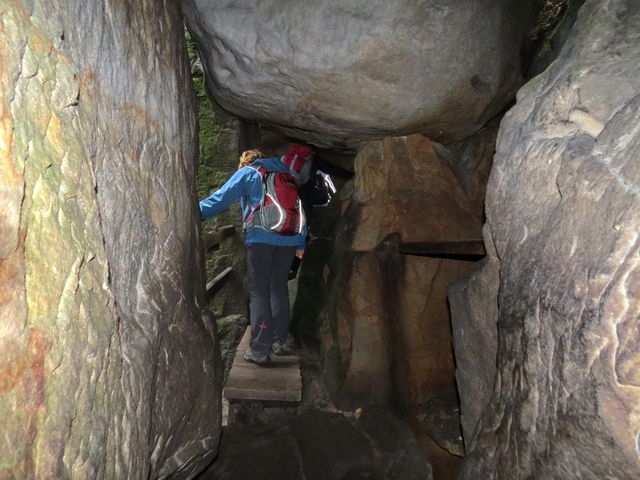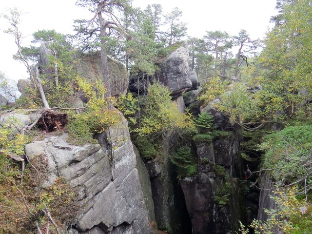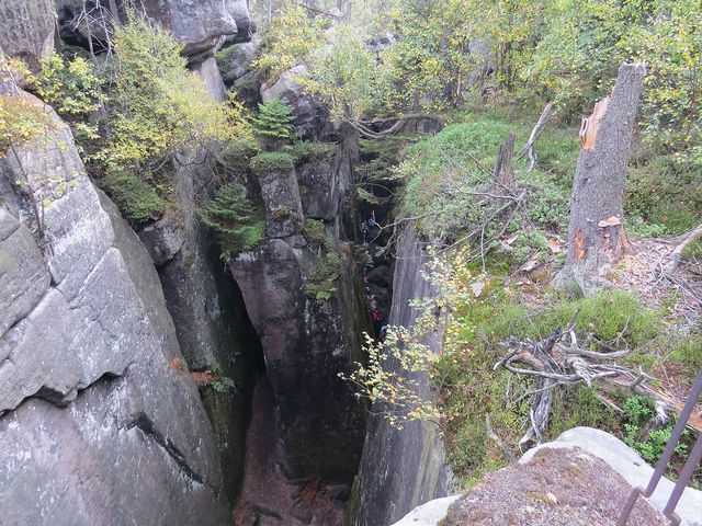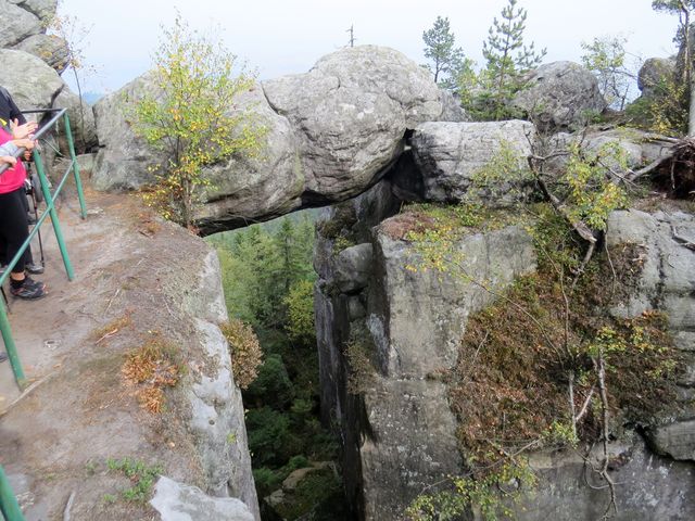 Protikladem je blízká skalní brána a kamenné bloky nad rozsedlinou.