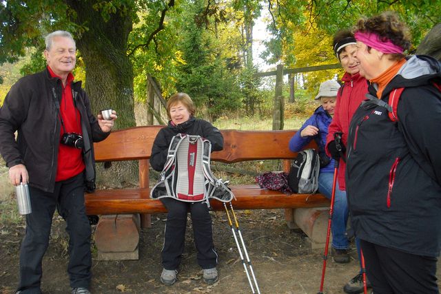 Na Žďársko jezdíme vždycky rádi – a na podzim obzvláště rádi, mnohokrát jsme se zúčastnili některé z tras připravených pořadateli. Letos jsme pozvali členy KČT Čeřínek, aby se na pochod Podzimní Vysočinou vydali také a měli jsme radost, že se jich na nádraží dostavilo 17.