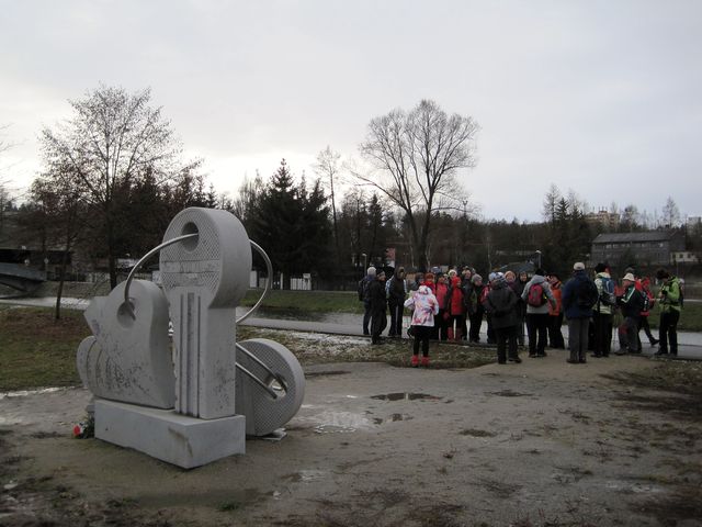 Iva Svobodová z KČT Tesla Jihlava, která vycházku už léta pořádá (na těchto stránkách jsou zprávy o jejím průběhu od roku 2007), stanovila letos sraz účastníků u Českého mlýna před sochou Klíčů instalovanou na nábřeží u řeky Jihlavy 17. listopadu 2015.